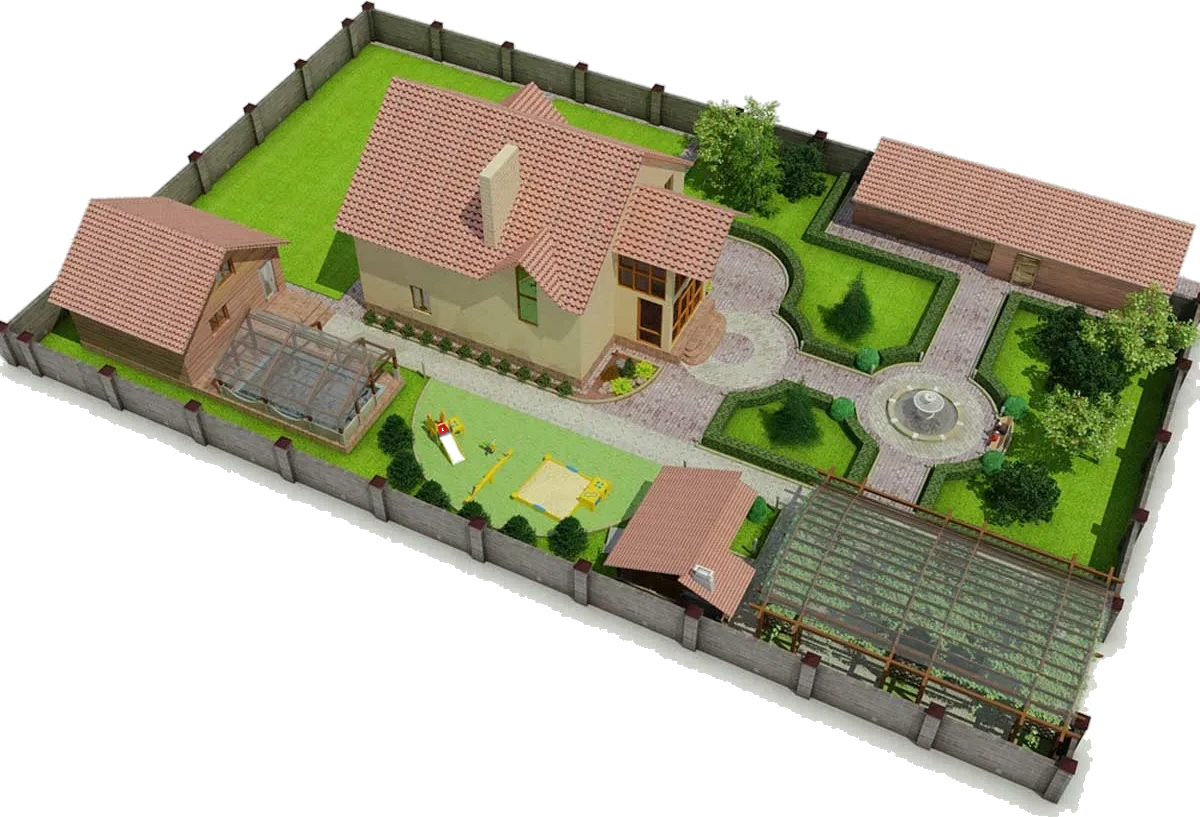 - Генеральный план. Далее проектировщики составляют генплан приусадебного участка, на котором будут отмечены все элементы, включая дорожки, площадки, зоны отдыха и т.п.