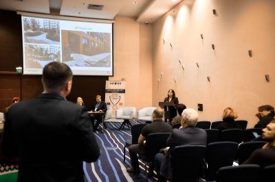 В рамках выставки представитель завода «Поревит» Ольга Шильреф выступила с докладом “Культура благоустройства в современном пространстве”. Спикер рассказала о трендах в организации жилой среды, в первую очередь упомянув экологичность. Так, одним из самых популярных направлений сегодня является активное возвращение в город живых растений. Речь идет не только о привычном озеленении парков и скверов - ландшафтные композиции сегодня появляются даже на крышах и фасадах жилых домов.