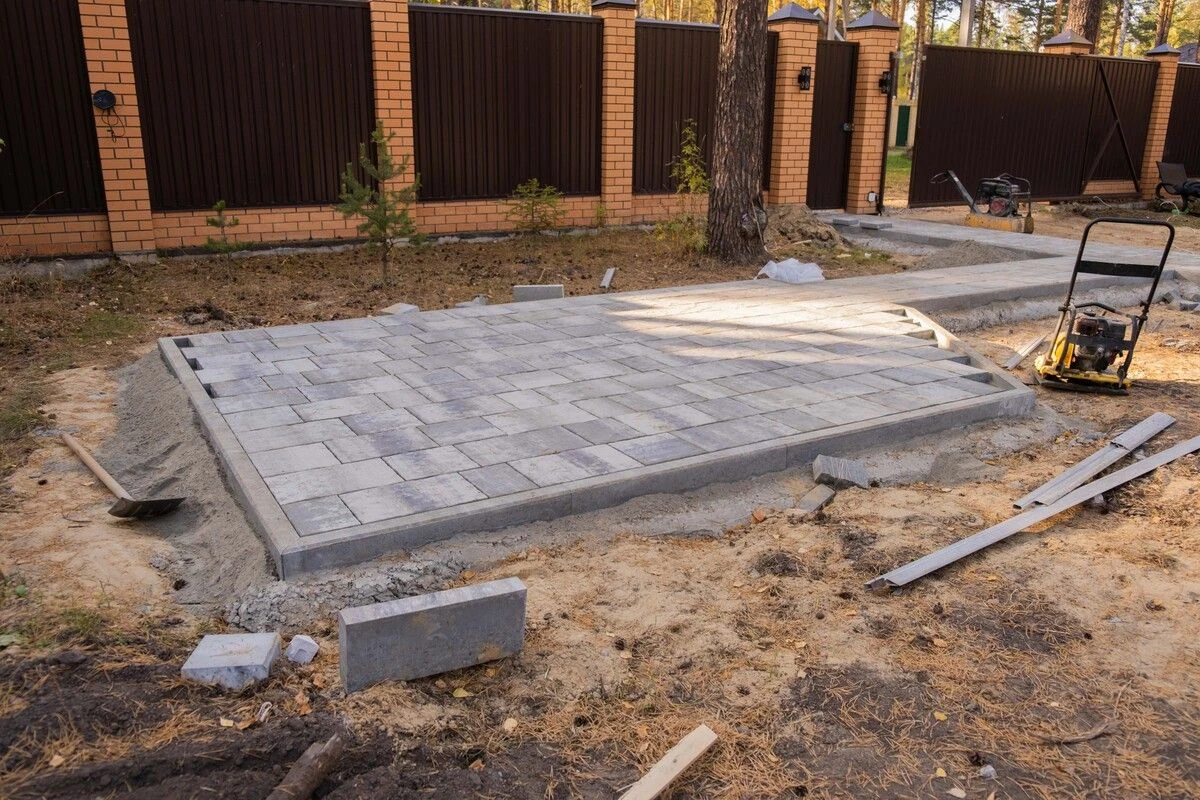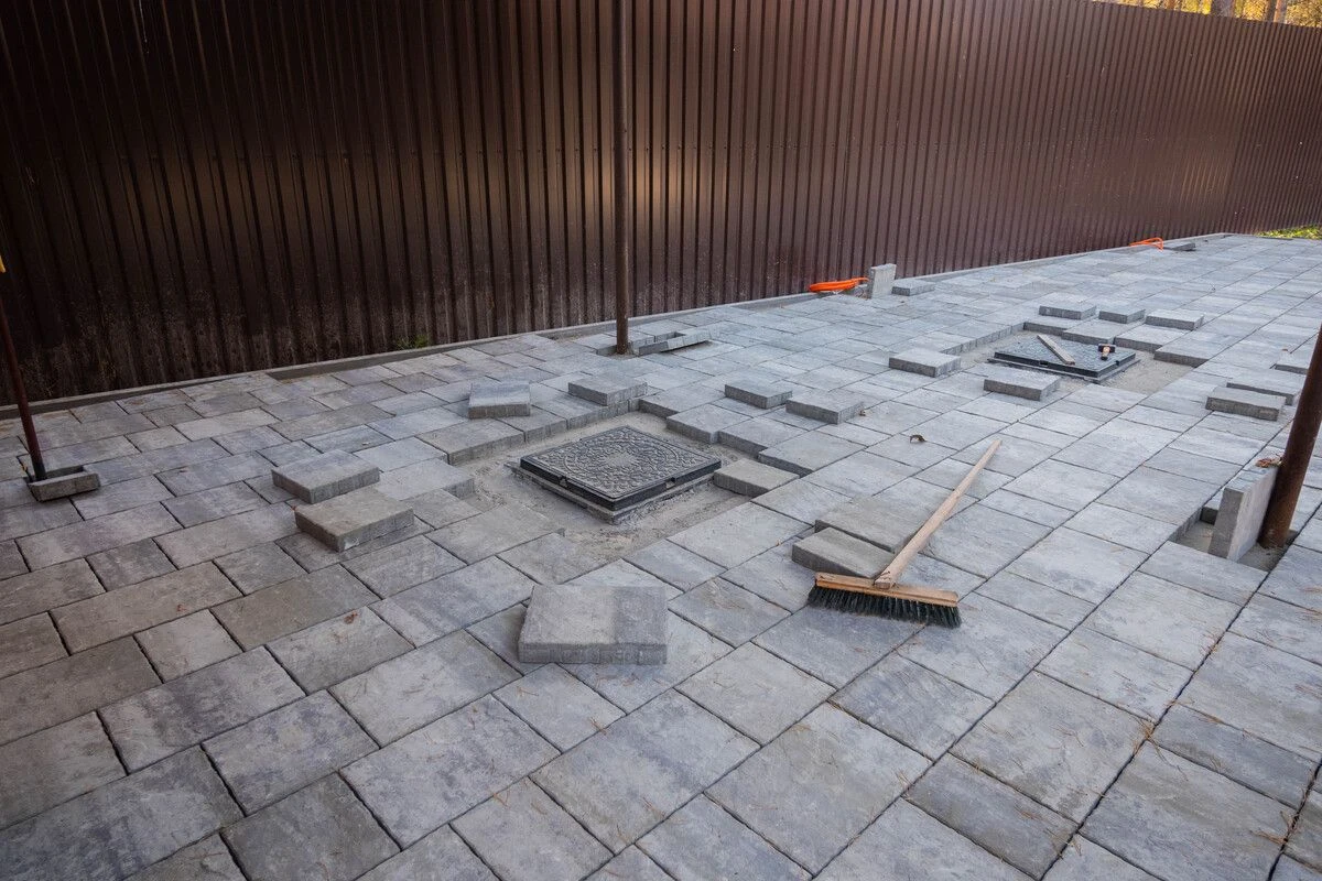 • Укладка бетонной плитки серого цвета в Комарово