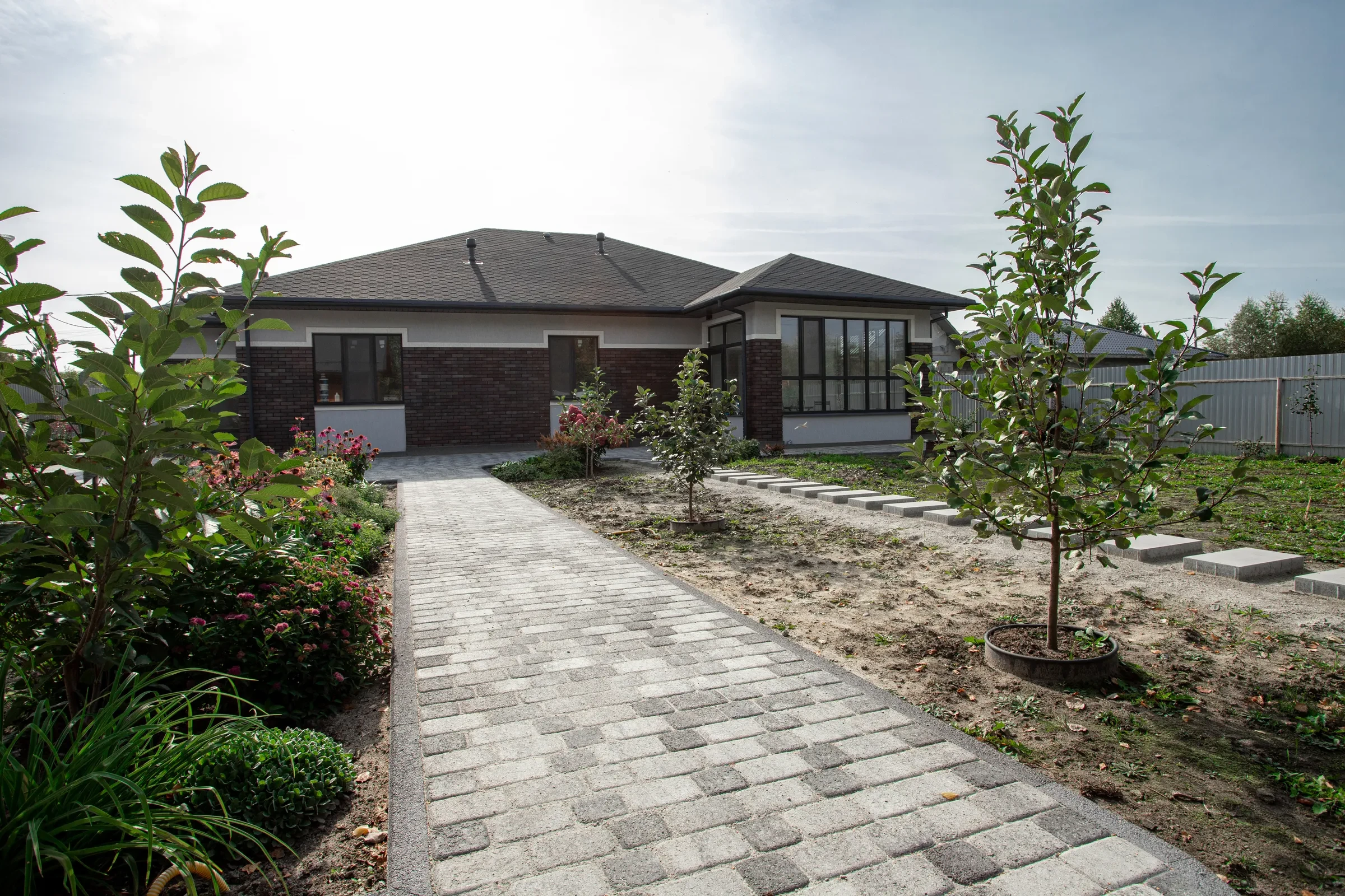 Благоустройство дома: плитка в цвете Антрацит и шаговые дорожки