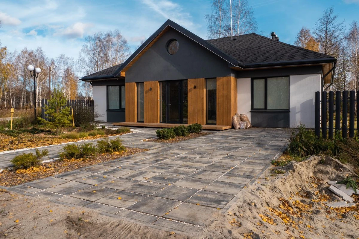 • Благоустройство дома: плитка в цвете Антрацит и шаговые дорожки