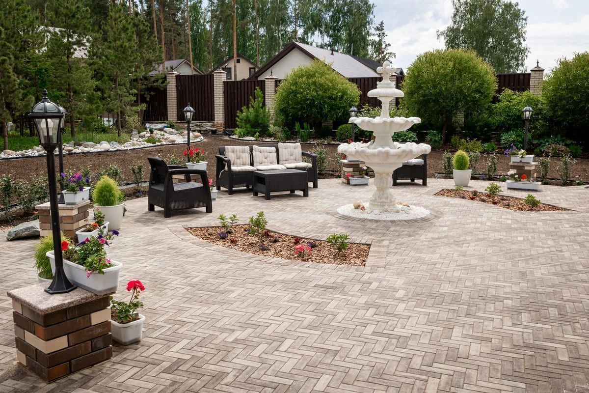• Частная территория с плиткой Старый Город в цвете Антрацит