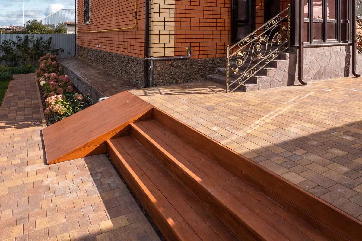 • Благоустройство дома: плитка в цвете Антрацит и шаговые дорожки