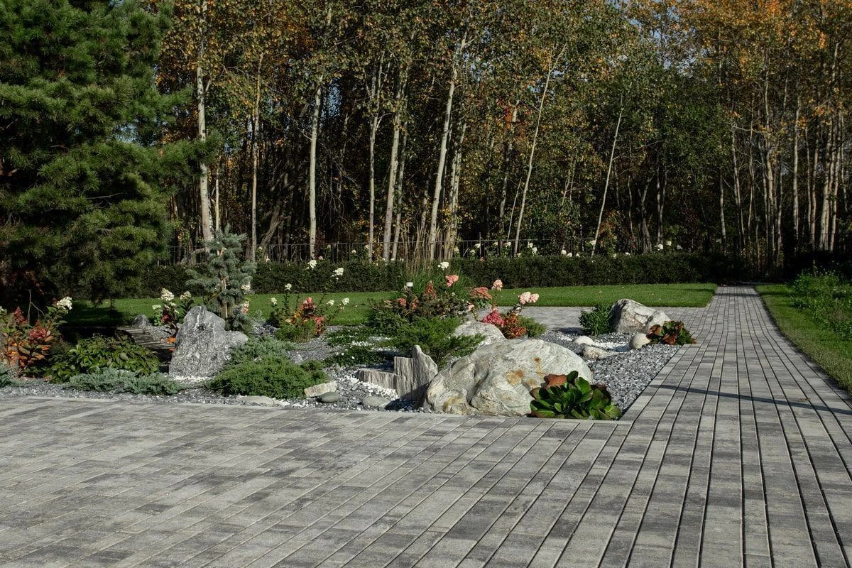 Ландшафтный дизайн в Тюмени с плиткой Ригель, Трио, 300х900 мм