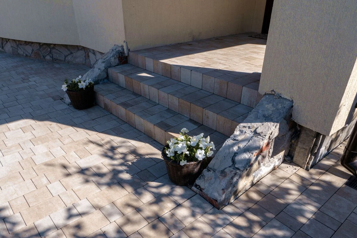 • Благоустройство дома: плитка в цвете Антрацит и шаговые дорожки