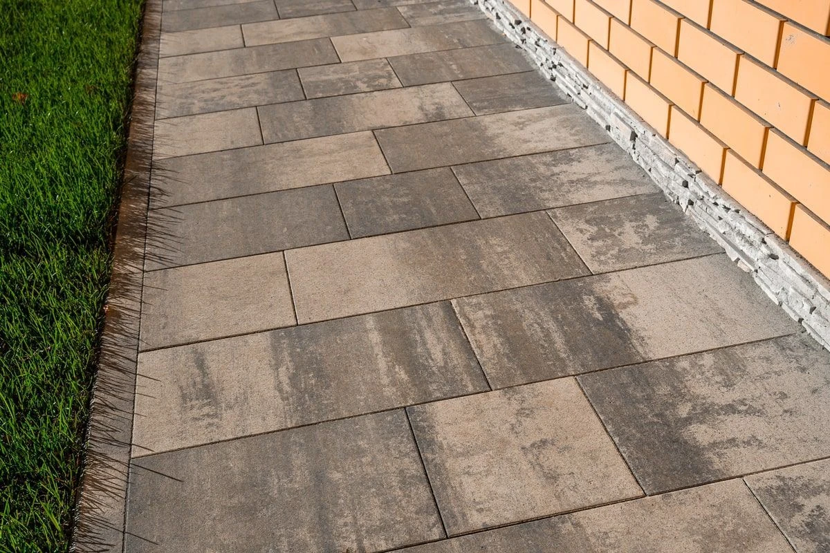 С помощью плитки была выполнена отмостка возле дома, въезд в гараж и парковочное место, входная группа у крыльца. Материалы подобраны таким образом, чтобы создать нестандартную текстуру без необходимости микса разных коллекций плитки.