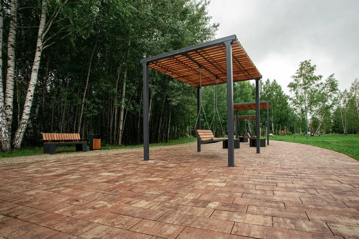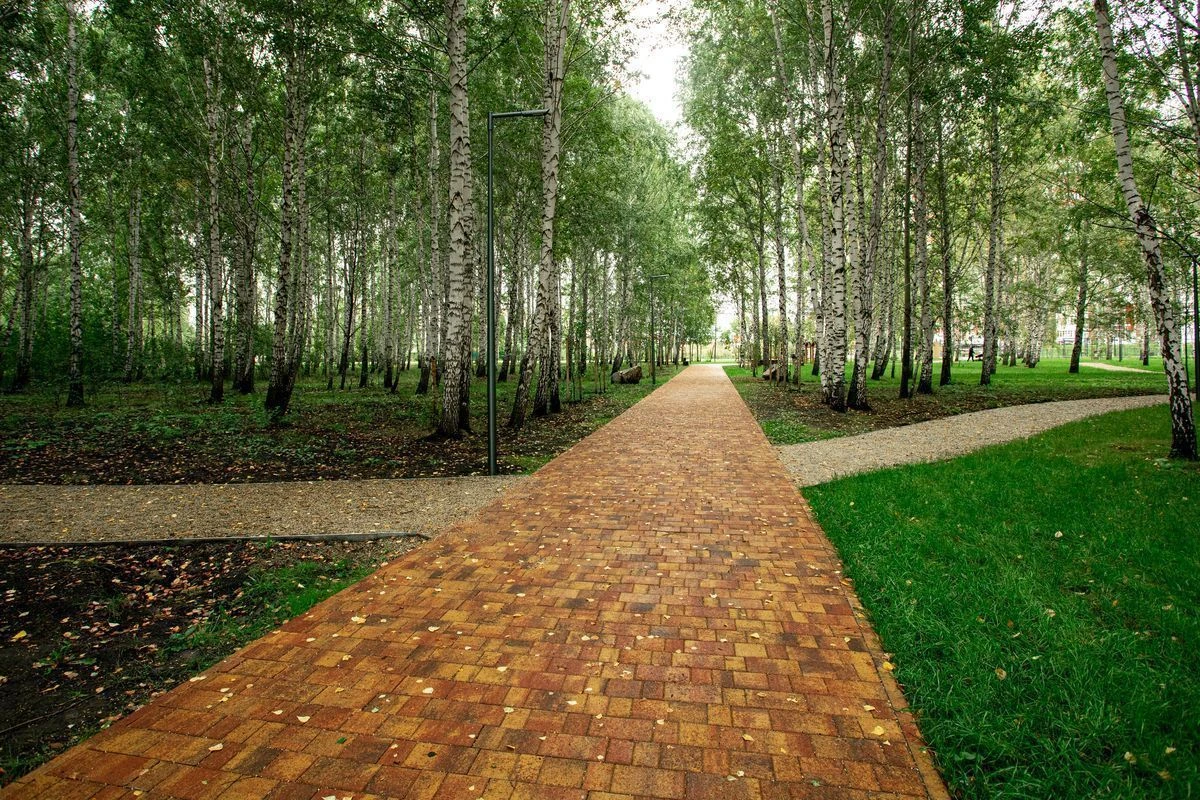 Для пешеходных дорожек в парке использована в том числе тротуарная плитка "Поревит": Арбор в цвете Орех и Старый город в цвете Осень.