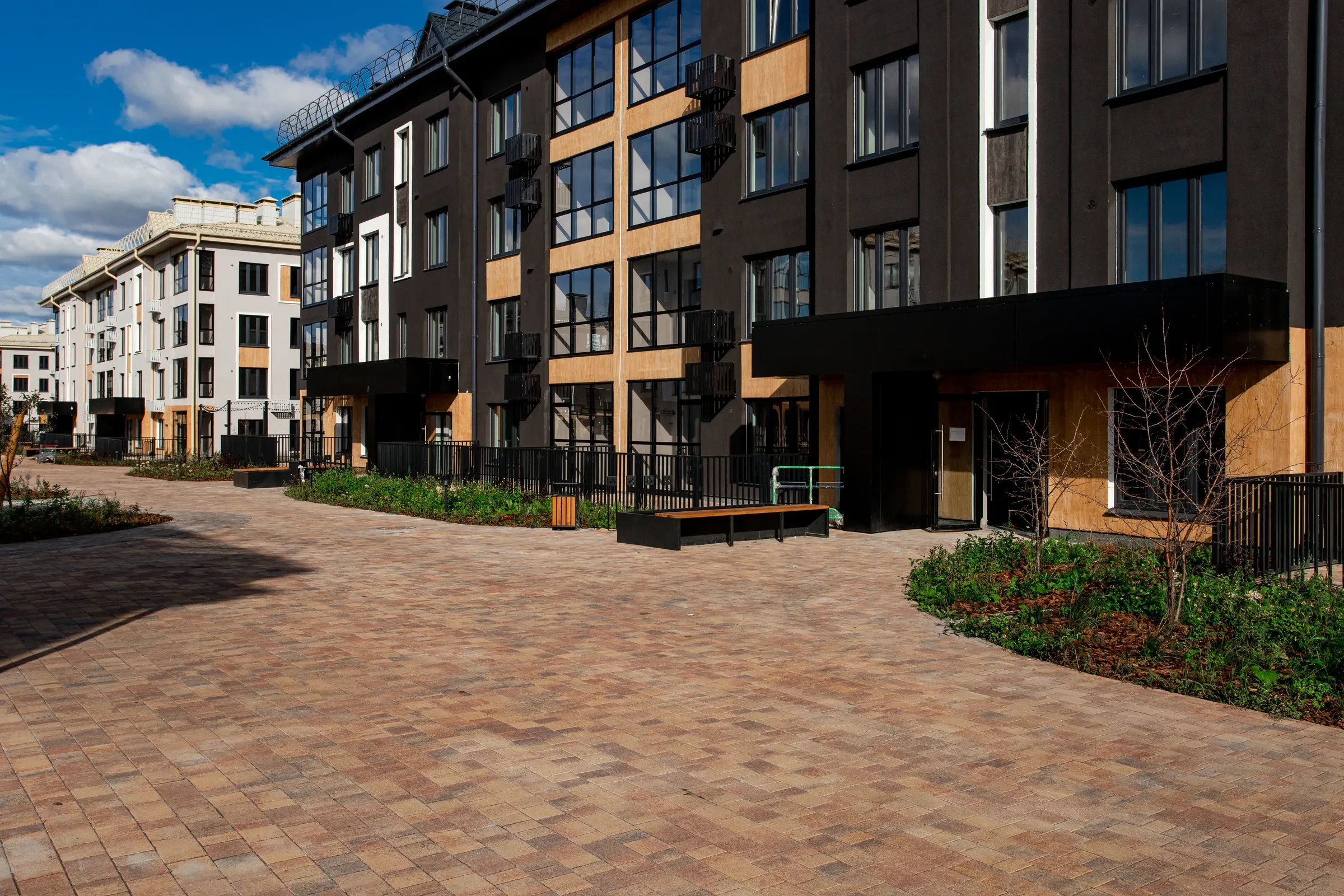 • Благоустройство территории дома в Луговом: плитка Старый город, Доломит